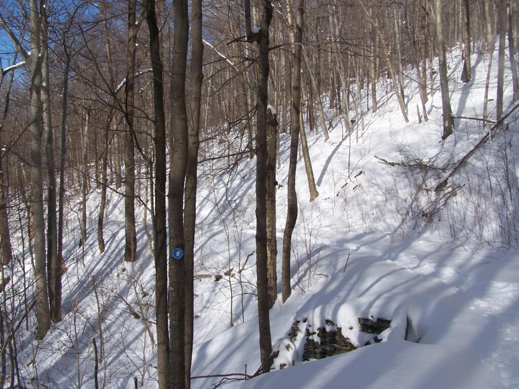 The first part of the Spruceton Trail follows the 30-foot wide old Hunter Road, which was maintained until 1937 and went from Spruceton to Hunter, cutting off 16 miles from the trip.