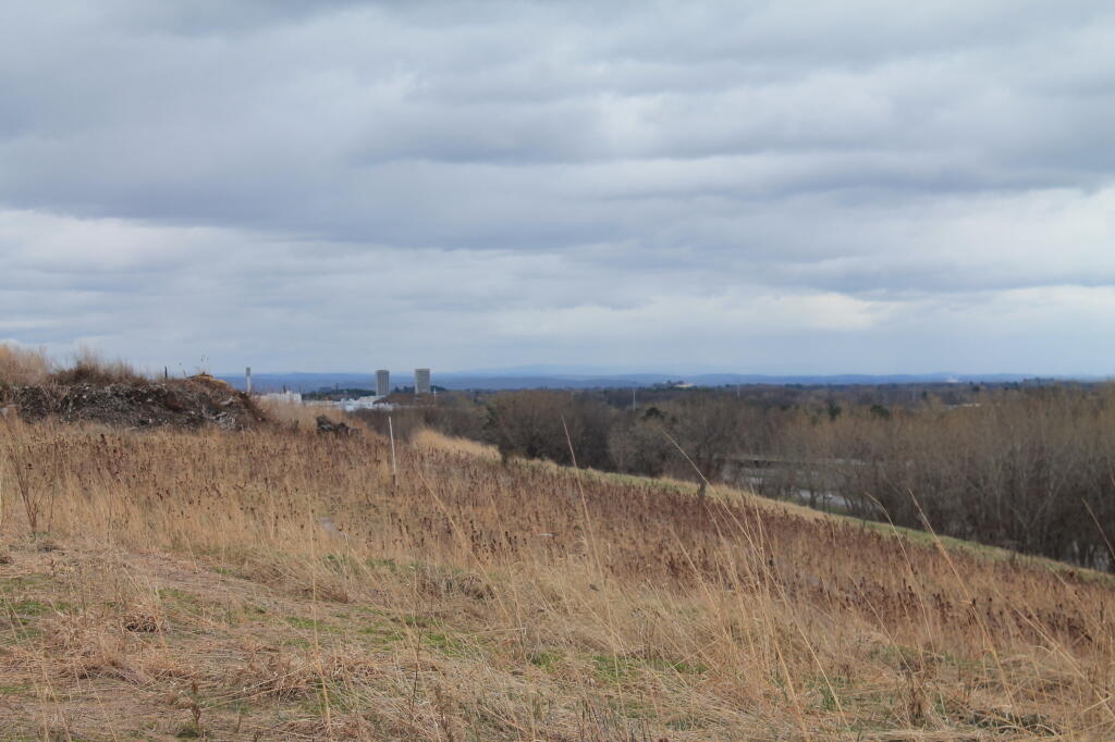 Looking at the hilly terrian atop the Greater Albany Landfill.