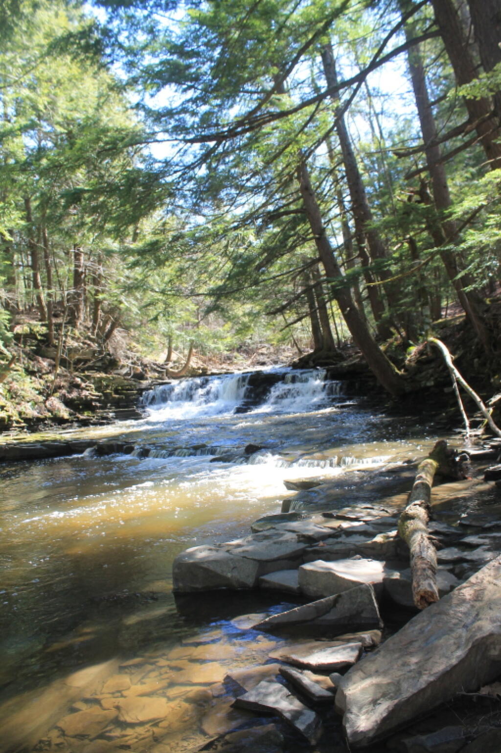 A highlight of the Christman Sanctuary is the Bozenkill, with its 30-foot waterfall and numerous lesser cascades. Alternate layers of sandstone and shale are found in the large pool at the foot of the waterfall.