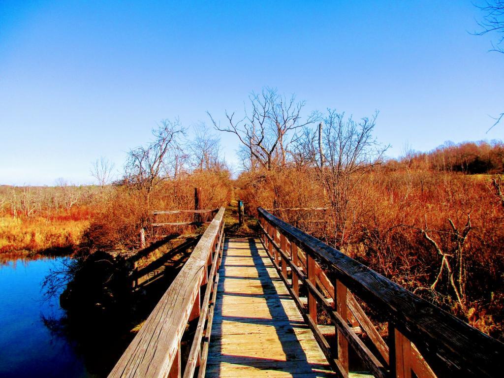 A segment of the North County Scenic Trail passes through Nelson Swamp on the abandoned grade of the West Shore Railroad. The elevated grade offers the best opportunity for accessing interior sections of the swamp without impacting sensitive wetland soils. A trail head kiosk and parking area are located adjacent to Stone Quarry Road.
