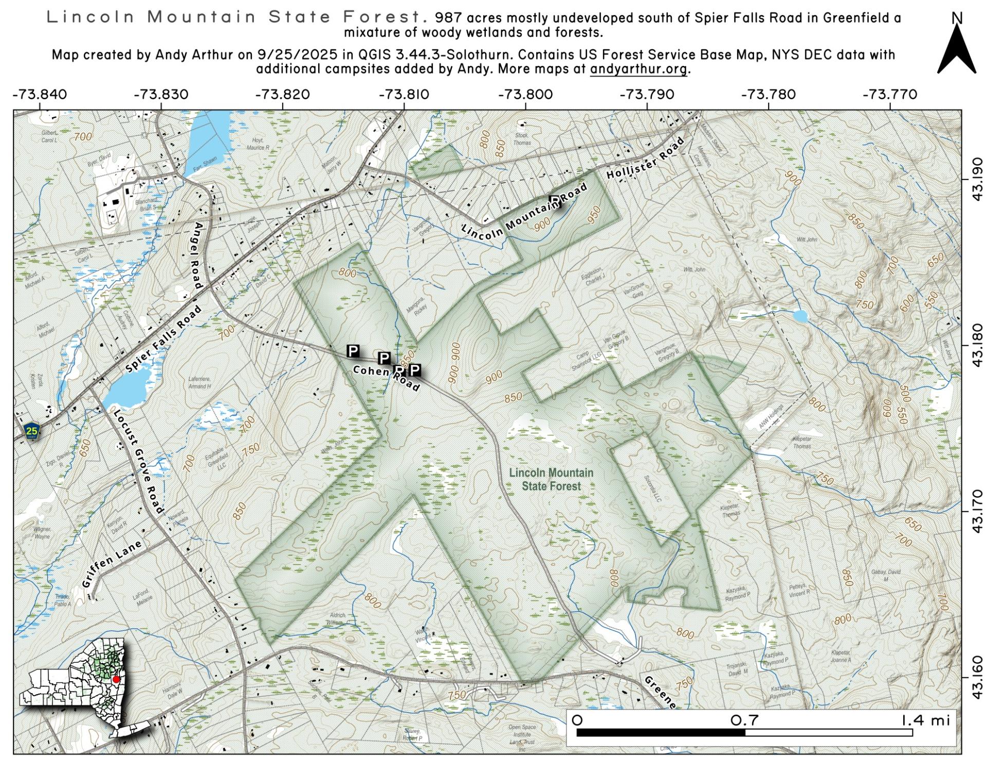 ... shows your location as a blue dot in relationship to campsites, trails, state land. This online map requires cell service, won't work in remote country, so also bring a paper map.