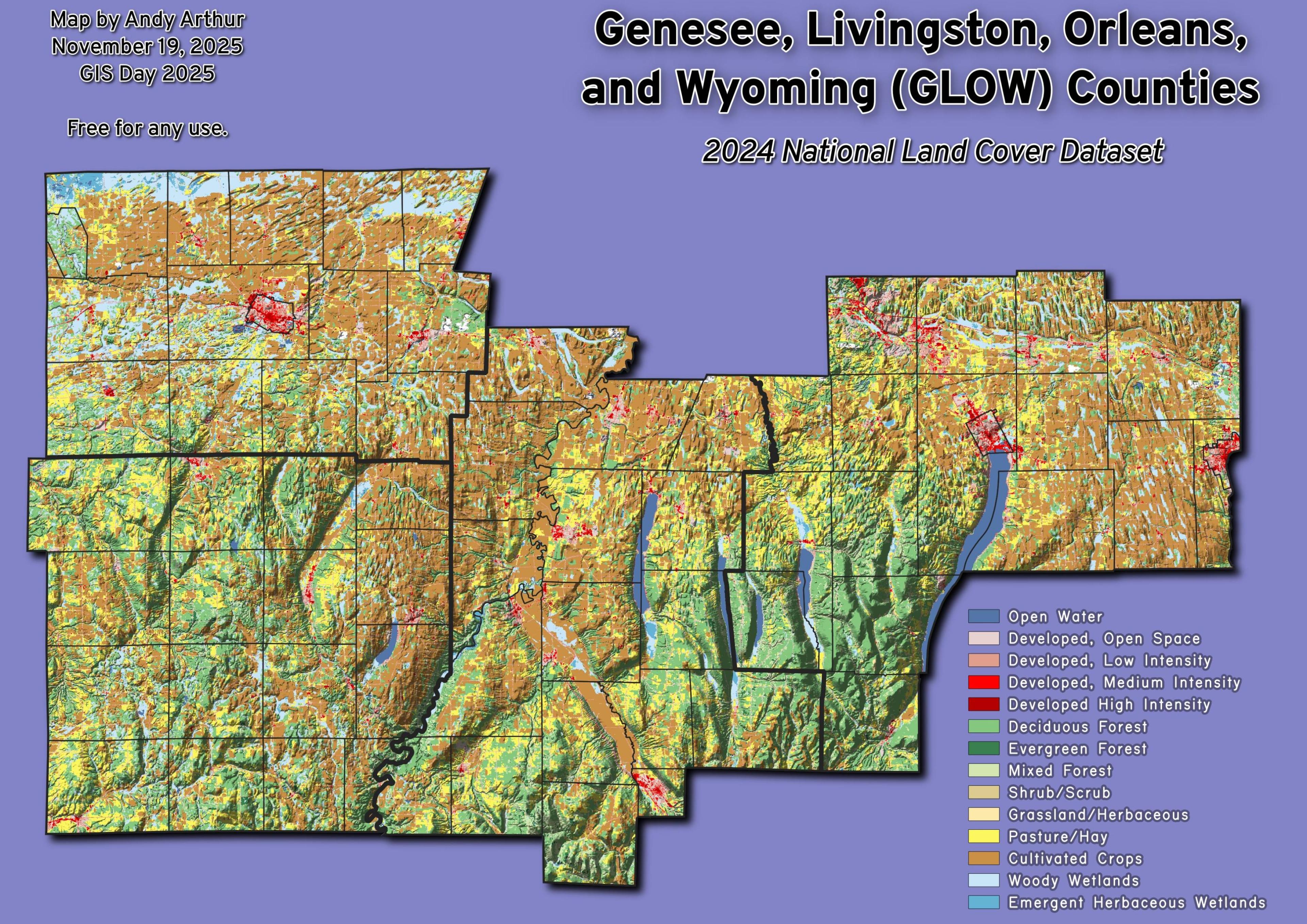Thematic Map: Genesee, Livingston, Orleans, and Wyoming (GLOW) Counties - National Land Cover Dataset 2024 Download a High Resolution JPEG Image of the Genesee, Livingston, Orleans, and Wyoming (GLOW) Counties - National Land Cover Dataset 2024 or an Adobe Acrobat Printable PDF of the Thematic Genesee, Livingston, Orleans, and Wyoming (GLOW) Counties - National Land Cover Dataset 2024. More about Geneseo...Maps and InteractivesSilver Lake – Perry 1905Perry – Year Buildings BuiltGeneseoGenesee River Outside of AvonGenesee RiverGenesee, Livingston, Orleans, and Wyoming (GLOW) Counties – National Land Cover Dataset 2024Genesee, Livingston, Orleans, and Wyoming (GLOW) Counties... photos, maps and other content from from Geneseo. Leave a Reply Cancel replyYour email address will not be published. Required fields are marked *Comment * Name * Email * Website Save my name, email, and website in this browser for the next time I comment. Δ